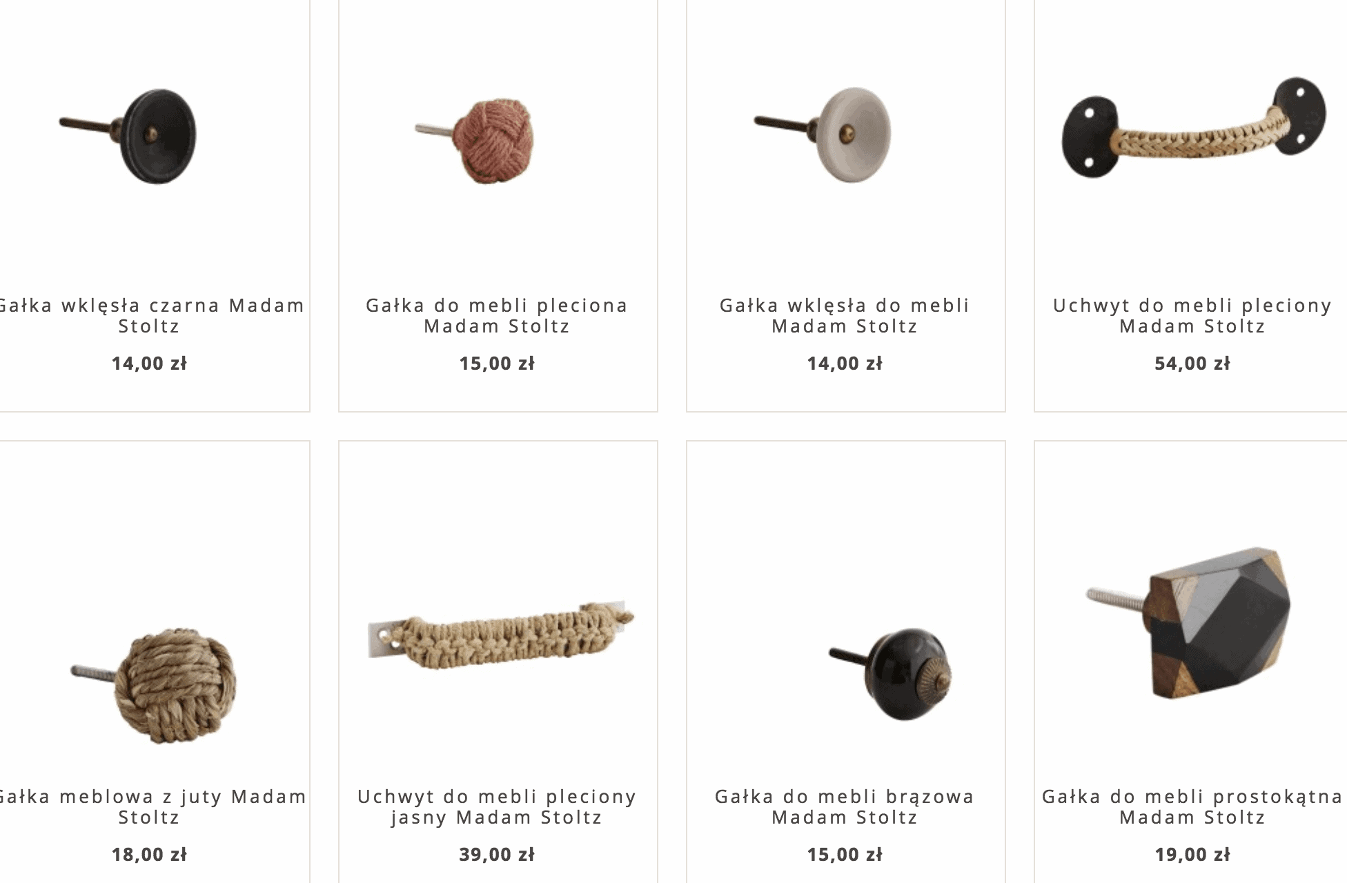 Ciekawe gałki w swojej ofercie ma też sklep internetowy regałka. Wbrew nazwie znajdziecie tu też uchwyty, więc dla każdego coś dobrego. Ogromny wybór, można spędzić miesiąc tylko scrollując ich ofertę. Nie wyłania się nam tu jeden konkretny styl więc warto mieć w głowie jakiś pomysł na mebel zanim zaczniemy szaleć z zakupami. Bo można się nieco zagubić. Sklep dzieli gałki na różne kategorie więc to trochę ułatwia szukanie.