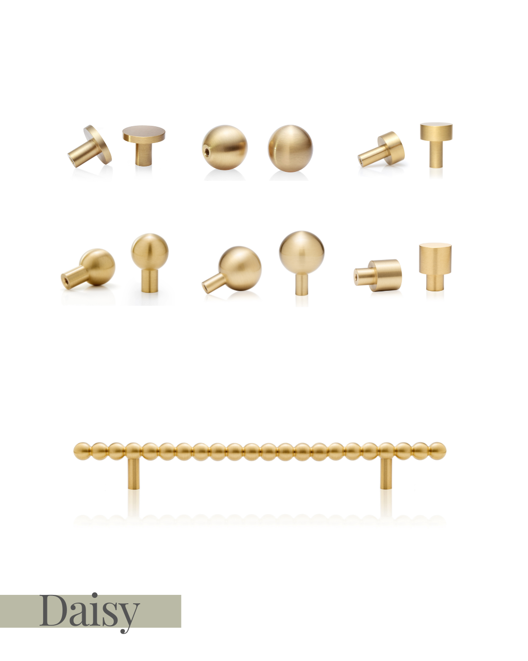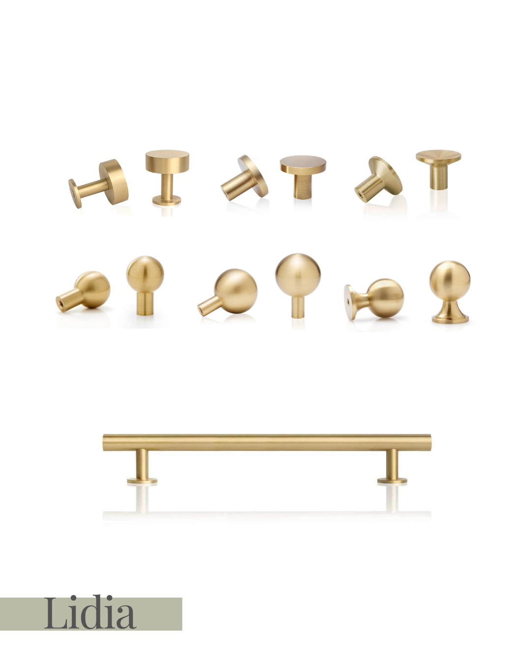 Jak już doskonale wiecie, wszystkie nasze mosiężne uchwyty mają jednakowy kolor. Oznacza to, że możecie je ze sobą dowolnie łączyć i zestawiać — a takich kombinacji jest naprawdę wiele.