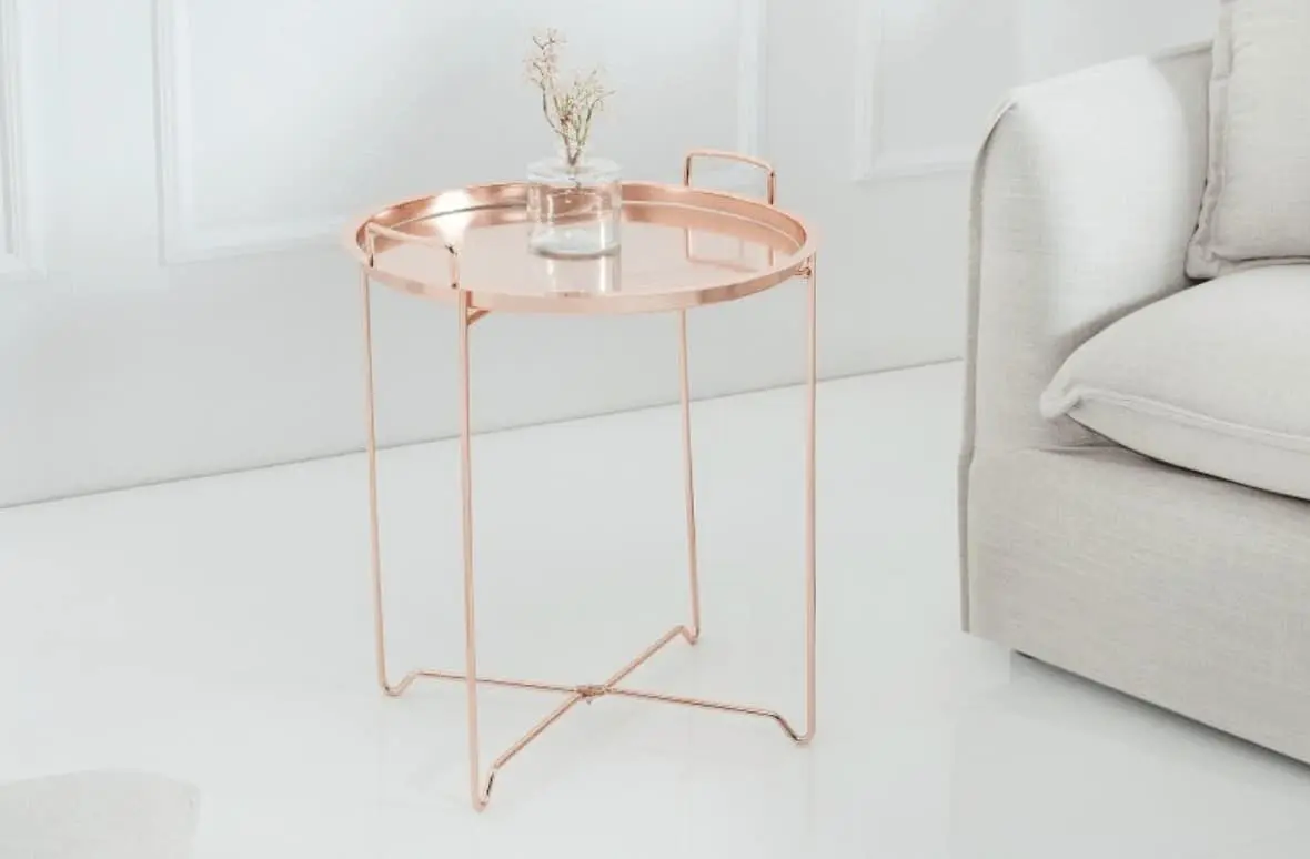 Absolutnym trendem ostatniego czasu są stoliki – tace. W oryginalnym rozumieniu tego stolika powinien składać się ze stelaża i zdejmowanej tacy. W ten sposób możemy postawić przekąski na stoliku, ale też podać je leniwym gościom, jeśli się zasiedzą w fotelu.